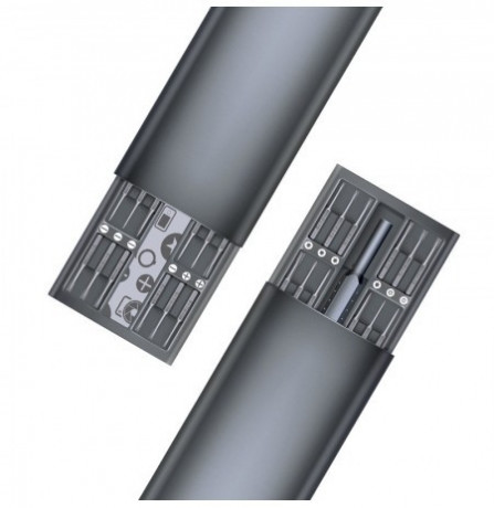 Набор инструментов JM-8169 от производителя Jakemy выполнен из прочного алюминиевого сплава S2. Кейс автоматически открывается после нажатия сбоку. Размеры кейса - 168мм х 66мм. Биты надежно крепятся как в ячейках кейса, так и в самой рукоятке за счет магнита. Также следует отметить, что рабочая часть обычных бит составляет 9мм, в представленном наборе все биты имеют длину рабочей части биты 12мм. Разница в 3 мм существено ощутима в процессе работы, делает ее более комфортной и эффективной.