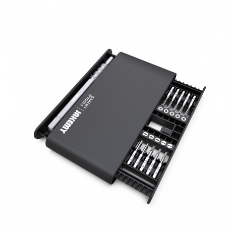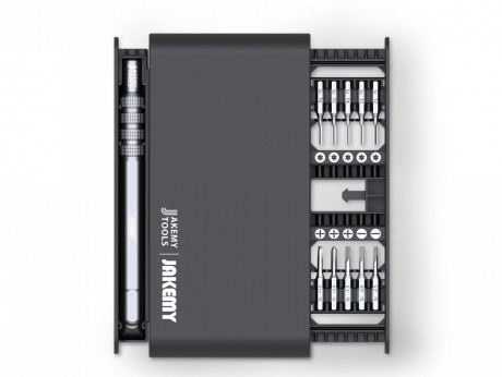 Набор JM-8170 от производителя Jakemy предусмотрен для ремонта компьютеров, смартфонов, игровых консолей и прочей электроники. Все биты плотно держаться в ячейках за счет магнитного кейса.