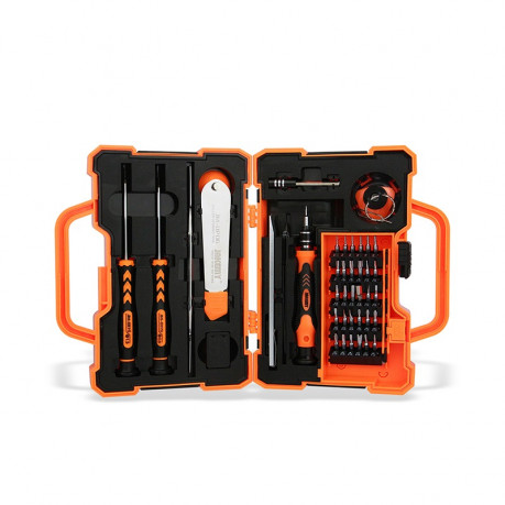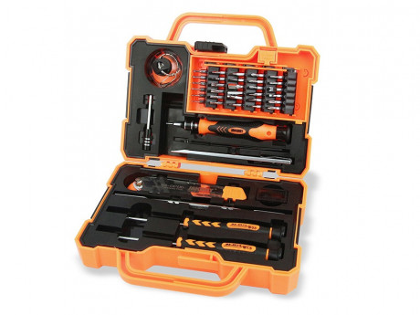 Для удобства набор комплектуется двумя отдельными отвертками pentalobe (звезда) 0.8 и phillips (крест) 1.5. В наборе предусмотрен пользующийся популярностью роликовый инструмент для бережного открывания корпуса, а также пинцет с острыми изогнутыми наконечниками, канцелярский нож, металлическая двухсторонняя лопатка-шпатель, медиатор, присоска для поднятия экрана, скрепка для SIM-лотка и коробка для хранения мелких деталей, в которой поставляются торцевые головки H5.0 и PH2.5 для ремонта компьютеров. Как видим набор JM-8139 укомплектован по максимуму, остальное дело за мастером!