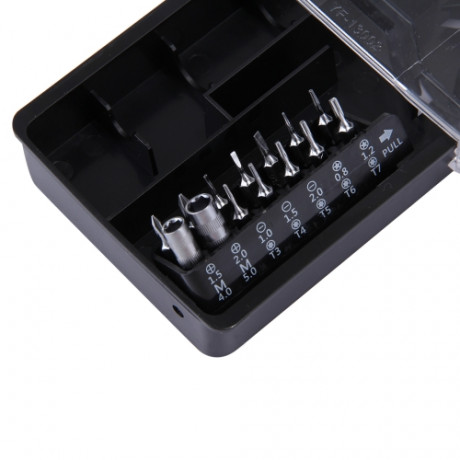 - биты в наборе из CR-V сплава размером H4x28мм (14 шт.):