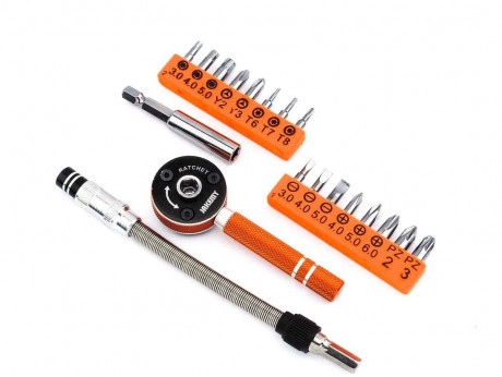 Отвертка с храповым механизмом со сменными насадками и гибким удлинителем Jakemy 19 в 1, JM-6119